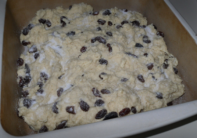 Mix the wet and dry mixtures together well, stir in the dried fruit.