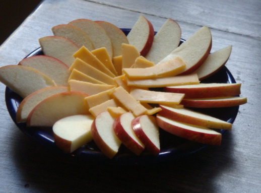 ✴ Apple slices with cheddar cheese on wheat crackers