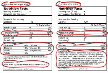 Juice, when compared to soda, is considered a better option because its sweetness comes naturally from fruit, not sugar or high fructose corn syrup which is used to sweeten soda. This is not always the case though with all juices- make sure you are offering your child real fruit juice and don’t be fooled by fruit drinks that contain artificial flavors, colors and sweeteners. Make sure the label says “100% fruit juice” and that the ingredient list does not contain “sugar” or “high fructose corn syrup”.