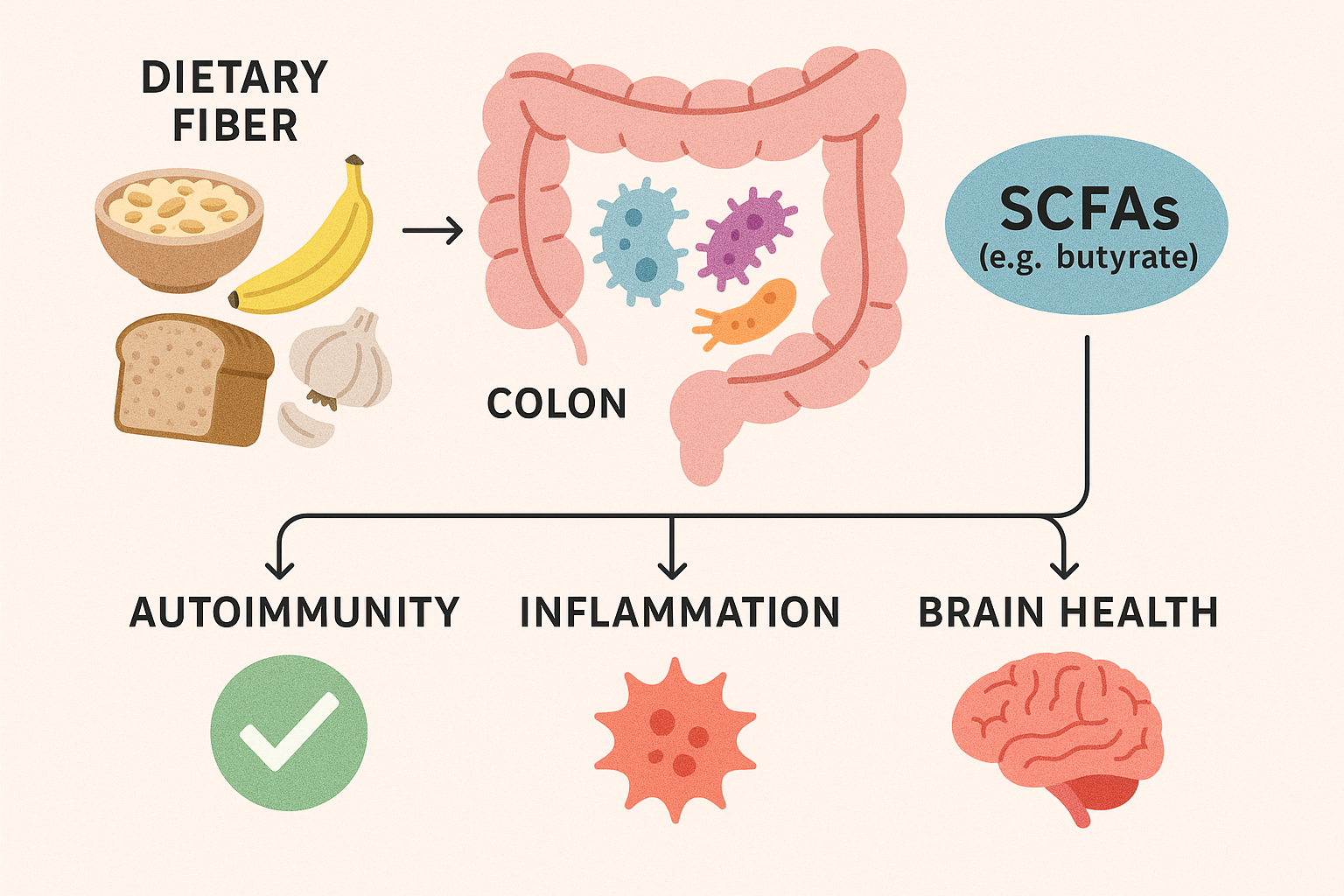 → Butyrate strengthens the gut lining by promoting tight junction proteins, preventing “leaky gut,” which is linked to chronic inflammation and autoimmune triggers. - Enhances regulatory T cells (Tregs) (this is important because Tregs help suppress inappropriate immune responses, thereby reducing autoimmunity conditions like multiple sclerosis, rheumatoid arthritis).